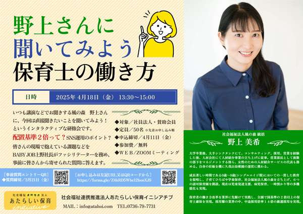 自法人だけでは得られない様々な価値観や手法を、気軽に学んでもらえる機会を通じて「あたらしい保育」を共に学び、成長していきましょう!
